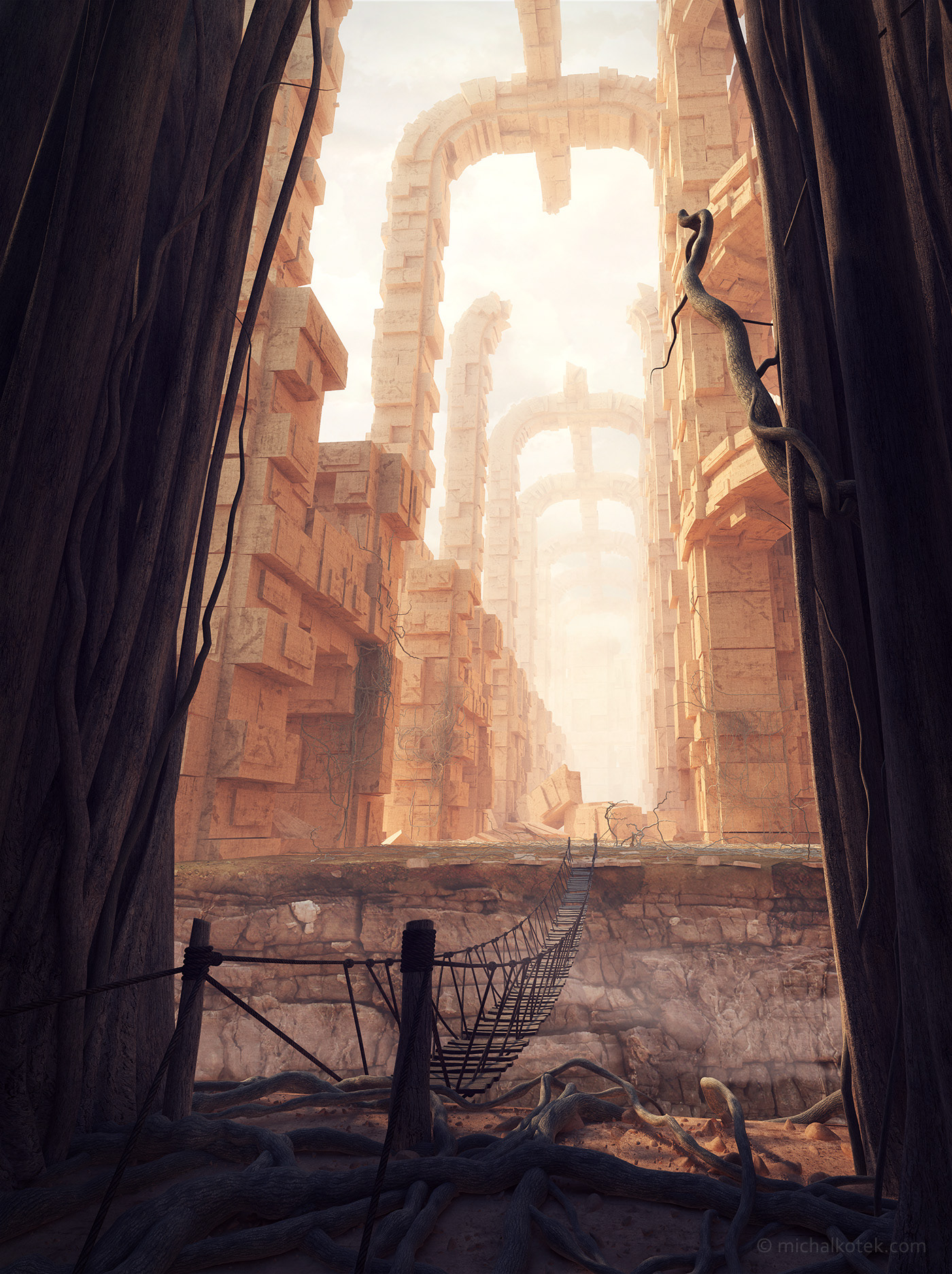 Old 3D rendered concept inspired by Peters Gric oil paintings.